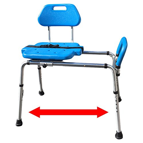 -. Feature : PROFESSIONAL GRADE sliding transfer bench, bath and shower chair. Effortless sliding for safe, easy transfers in and out of the tub. Platinum Health products are used in thousands of hospitals, nursing homes and in P.R.Ivate homes by customers who value quality, safety, convenience and comfort over P.R.Ice. Quick TOOLS-LESS assembly in less than 5 minutes. / FREE SEAT PAD (A $40 value!). Say goodbye to cold, slippery, hard plastic seats found on old-style bath chairs; the HydroGlyde provides warm to the touch, comfortable, slip resistant seating thanks to a limited time FREE BONUS PAD. The medical-grade, closed-cell molded polyurethane seat pad will not absorb any water and is easy to clean and disinfect. / INSTITUTIONAL QUALITY DESIGN/BUILD. The entire chassis of the HydroGlyde is manufactured with lightweight yet robust aluminum components. The frame will never rust and the durable construction prevents any wobbling, shaking or tipping. HEAVY DUTY 400 lb. CAPACITY / PADDED ASSIST HANDLE helps users easily glide in and out of the shower or tub. The smooth gliding chair eliminates the dangerous need to shuffle across the bench like old style bath benches that can often lead to skin tears, knee and hip joint strain as well as falls. The assist handle can be located on either the right or the left side of the frame to accommodate all tub and shower entry configurations. / HI CONTRAST COLOR FOR SAFETY. Our unique HI-VIEW BLUE color makes the key parts of the chair much easier to see by vision impaired and/or dementia afflicted users. Rather than blending in with the background like old-style white benches, the blue contrast color helps users distinguish the chair from its surroundings and significantly reduces slips, trips and falls- the leading cause of death by injury in people over 65. Doesn't stain like white plastic.