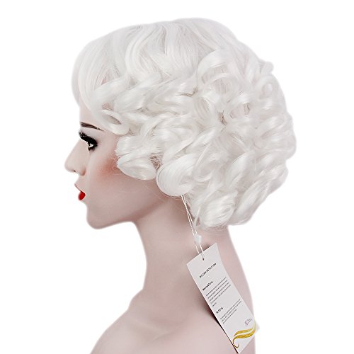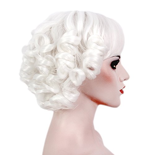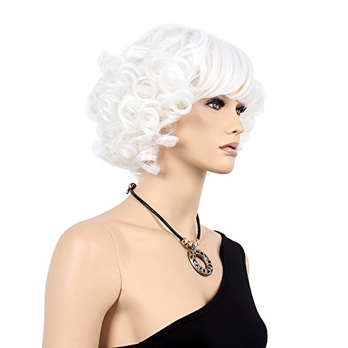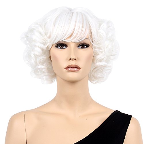 STfantasy Wigs for Women Short Curly Wavy Layered Lolita Harajuku Wig Cosplay Costume Party Synthetic Hair w/ Cap (14" White)