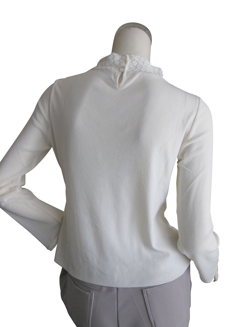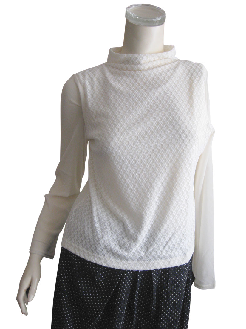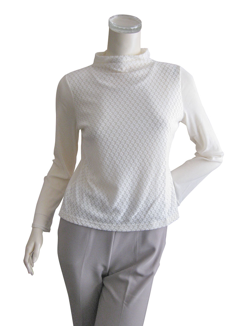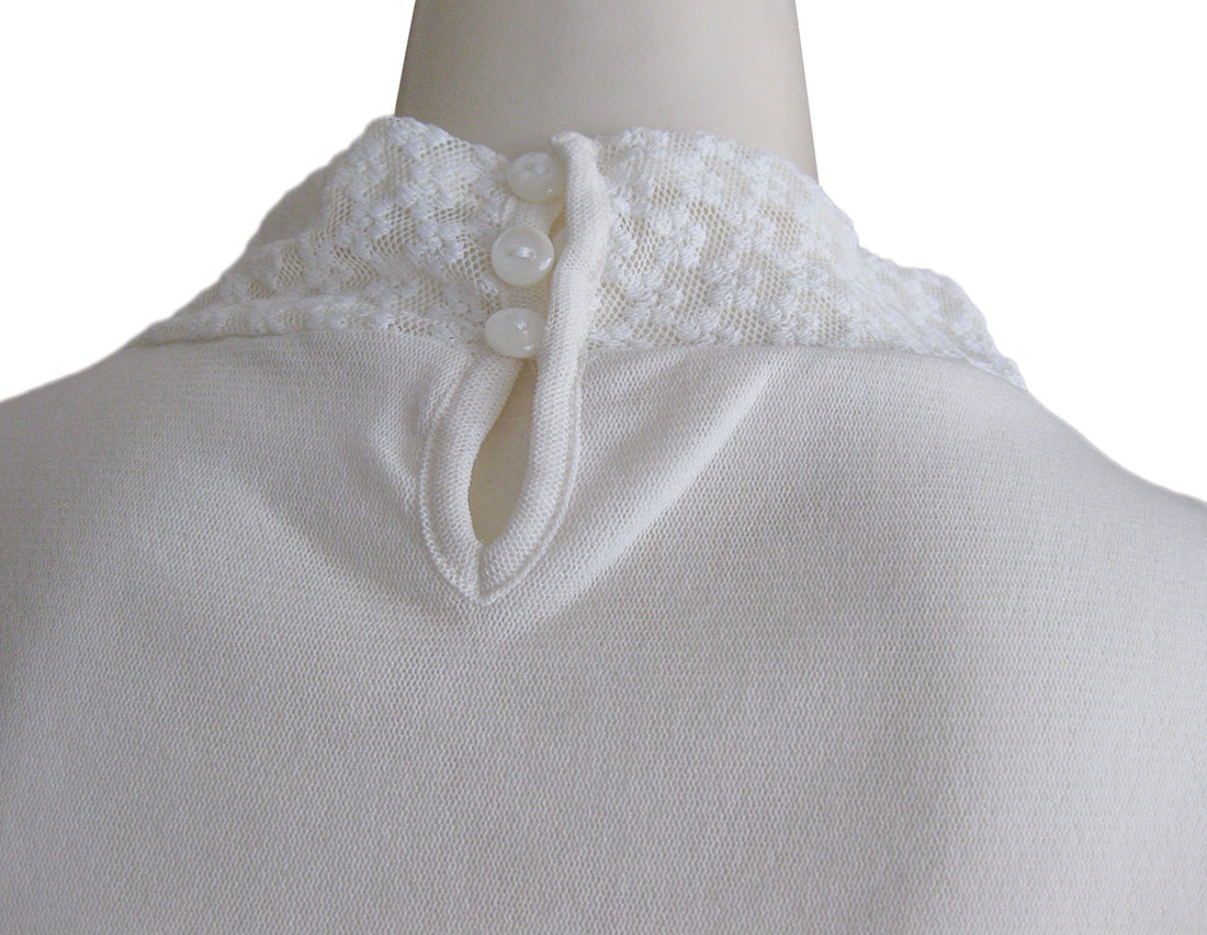 【日本製】小花柄レースニット使い パワーネット長袖プルオーバー