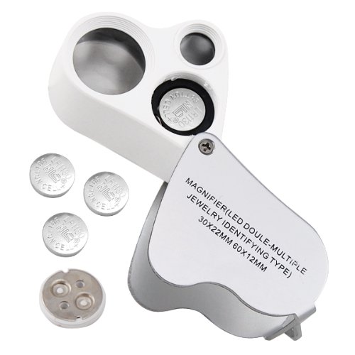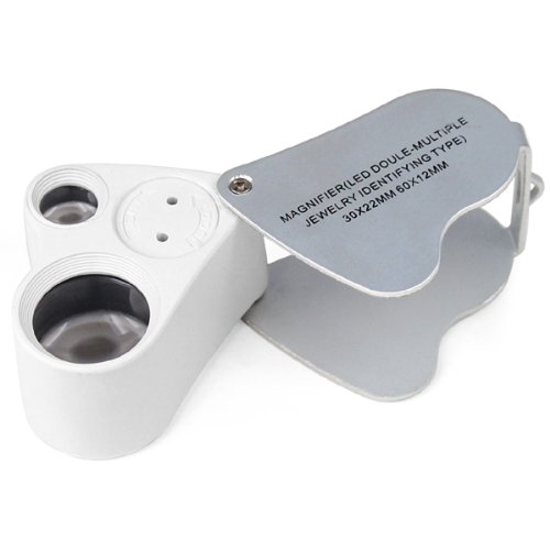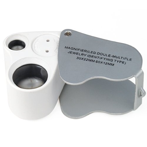 TRIXES Jewellers Lens Glass Loupe 30X & 60X Magnifier 2x LEDs Lights