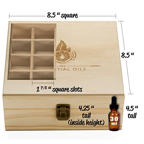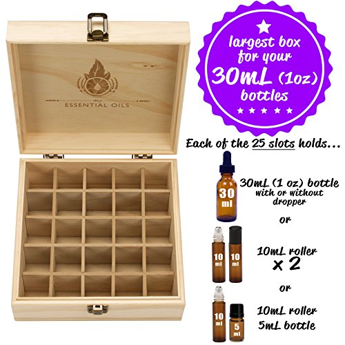 LARGEST BOX FOR 30ML (1oz) BOTTLES: 25 slots fit up to 30mL bottles with dropper tops! Compatible with NOW, Edens Garden, Plant Therapy, Kis Oil’S, and more. Also holds 50 rollers (10mL). DIMENSIONS: 8.5” (L) x 8.5” (W) x 4.5” (H)