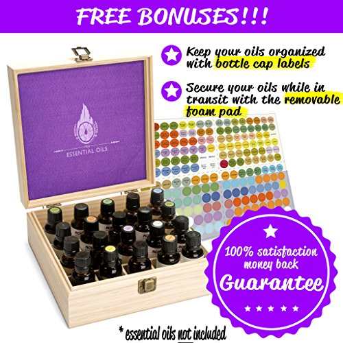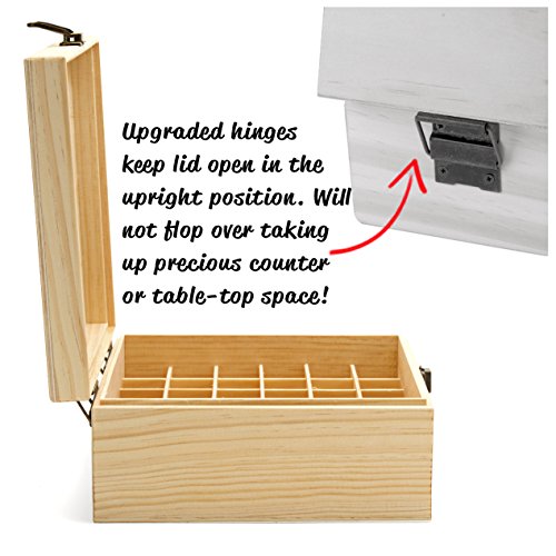 UPGRADED HINGES & FREE REMOVABLE PAD & LABELS: Lid designed to stay open at 90 degrees & will not take up counter or table space. Included pad secures oils during transit. Keep your oils organized with our free labels.