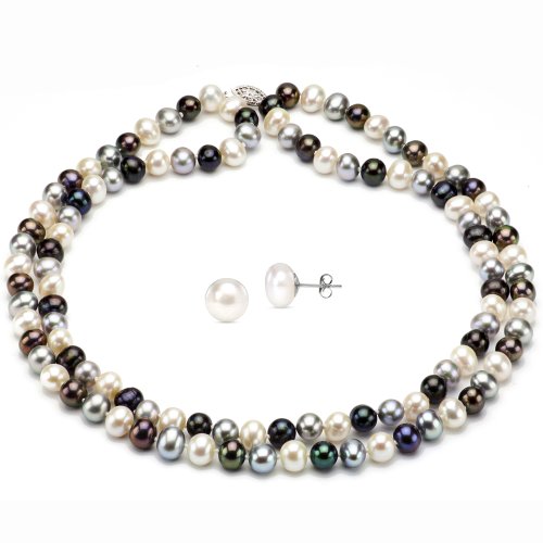 -. Binding : Jewelry -. Brand : La Regis Jewelry -. Department : womens -. Feature : . -. Label : La Regis Jewelry -. Manufacturer : La Regis Jewelry -. Model : SNE-176-07 -. MPN : SNE-176-07 -. PartNumber : SNE-176-07 -. ProductGroup : Jewelry -. ProductTypeName : FINENECKLACEBRACELETANKLET -. Publisher : La Regis Jewelry -. Studio : La Regis Jewelry -. Title : Sterling Silver 2-rows 7-7.5mm Dyed Multi-dark Freshwater Cultured Pearl Necklace and Stud Earrings
