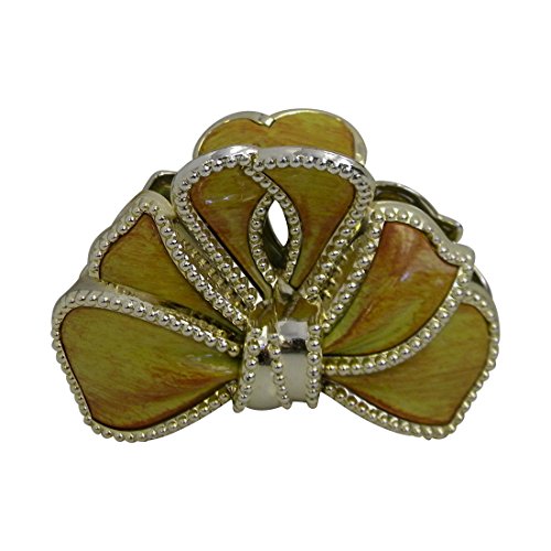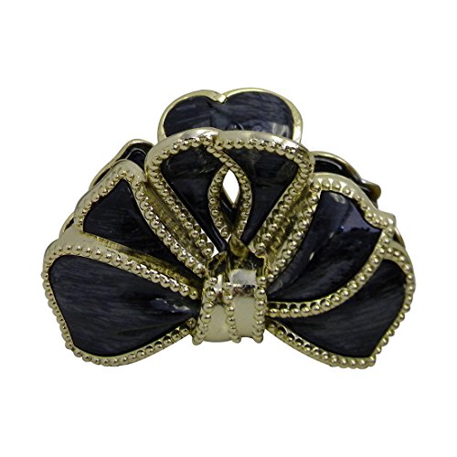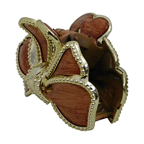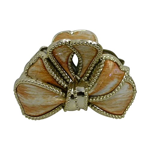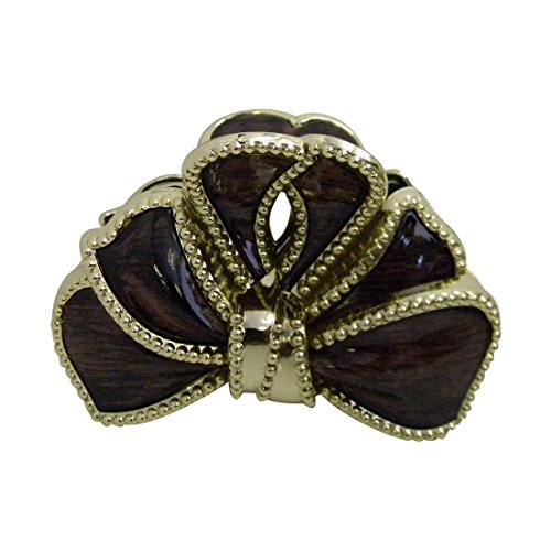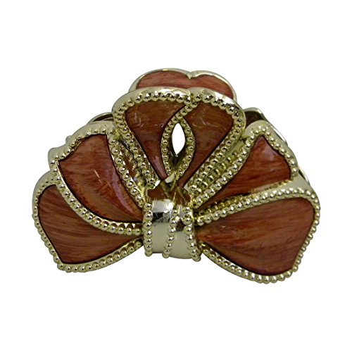 Aÿbeautiful jaw clip with a brushed wood look and gold trimming. The hair clip measures 3.5 inches wide, 2 inches tall, and 1.5 inches deep. Really good quality!