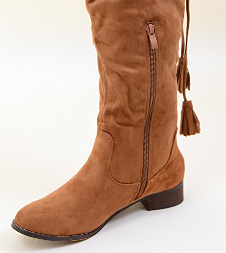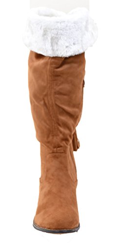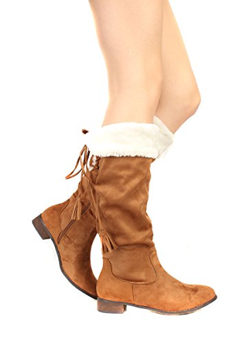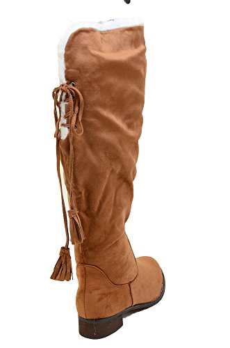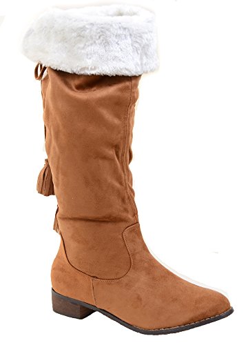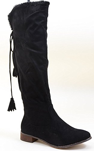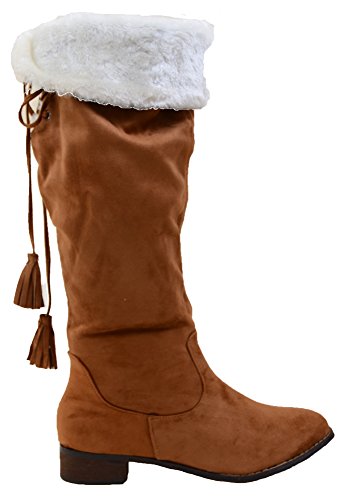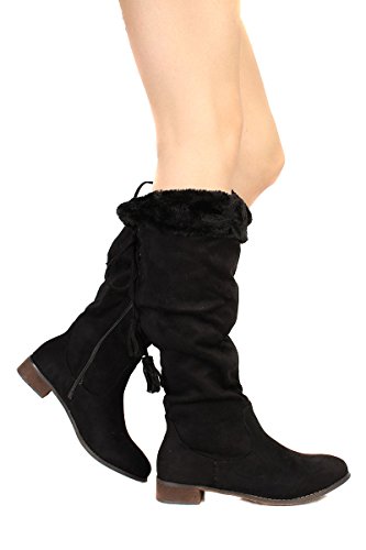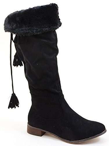 Back Lace Fur Fold Over Pirate Knee Boots Vegan Suede