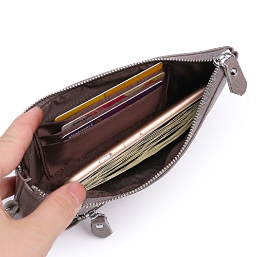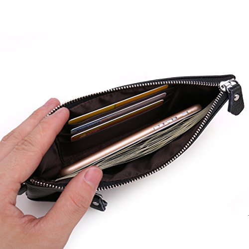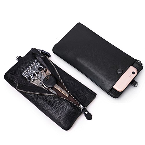 -. Feature : QUALITY: Made with 100% premium genuine leather. Comfortable hand feeling and durable quality. Handmade by the finest craftsmanship. Top grain leather is soft and durable. Shinier and sleeker to make a fashionable look for a wallet purse. Top grain leather all comes from a cow skin,100% genuine leather and is harmless to human, and the more you use, the softer it will be. / COMPATIBLE: Perfect fits for IPhone 7/6/6S/5/5S/5C/4/4S, Samsung Galaxy S8/S7/S6/S6 edge/S5/S4/S3, LG G2, HTC ONE M9, HTC 626S, MOTRO, LG. ATTENTION: it can only fit naked Iphone 6 plus, Samsung Note 5/4, S7 Edge, and Phone pouch not fit for Iphone 7 plus and Samsung S8 Edge, but zipper compartment, yes. Wallet size: 7.87" x 4.33" x 0.39". / STRUCTURE: 1 x bill section, 3 x concealed card slots, 1 x exterior cell phone pocket with snap closure, 6 x key rings in exterior pocket with zip closure, 1 x detachable wrist strap. / MULTIFUNCTIONAL wallet purse: 3 in 1 design: Special 2 pockets for phone and keys, and it fits most kinds of cell phone. Unique key-ring helps you easily hook/unhook your keys. Plus 1 Large compartments for placing credit cards, cash, coins, etc. All your personal staffs will stay inside the wallet securely. / ORGANIZATIONAL WONDER: Within its small purse comes the helpful ordering ability. You will not forget something important behind just take this one wallet, and you will feel very convenient and efficiency.