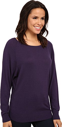 Relaxed fit silhouette. Ribbed round neckline. Three-quarter dolman sleeves with ribbed cuffs. Straight hemline with ribbed band. 40% viscose, 30% nylon, 25% polyester, 5% cashmere. Dry clean only. Imported.