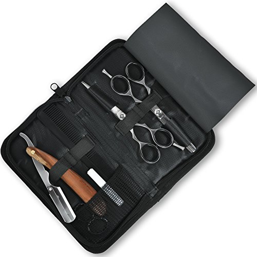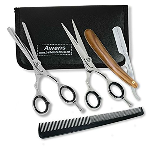 Hairdressing Barber Salon Scissors 5.5", Thinning Scissors 5.5", Wooden Handle Shaving Razor With Pouch