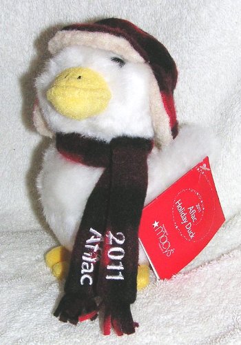 -. Feature : 2011 Plush Talking Aflac Holiday Duck / Aflac is wearing a plaid hat and scarf embroidered with "Aflac" and "2011" / approx. 6" high / press his body and he says "Aflac" three times / made for the 2011 Christmas Holiday season and sold at Macy's Department Stores
