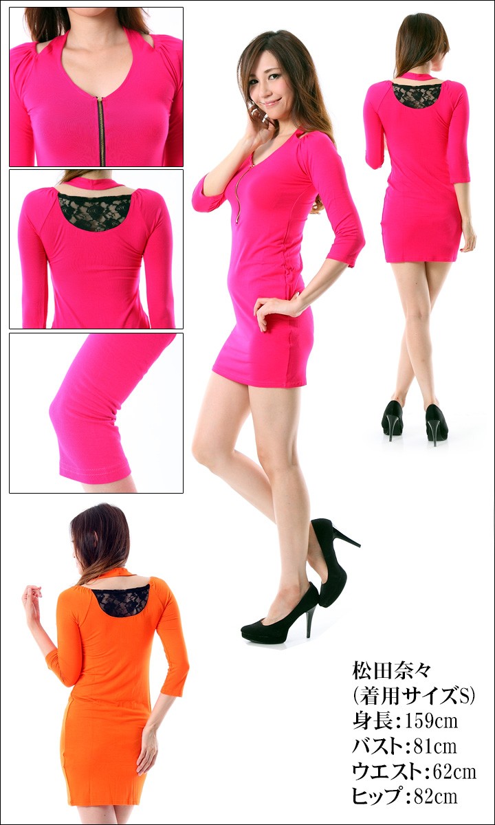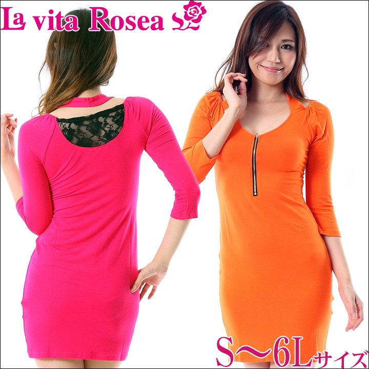 ホルターネック6分袖ワンピース(ST) 大きいサイズ 春 セクシー レディース ギャル服 ギャル 大人 13号 15号 17号 19号 LL 2L 3L 4L 5L 6L 6L