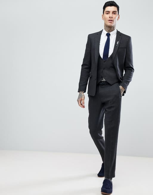 ASOS Slim Suit Pants in Charcoal Wool Mix Twill