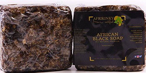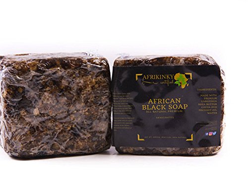 Afrikinky Premium Quality Authentic African Black Soap - Bulk 1lb Raw Organic Soap for Acne, Dry Skin, Rashes, Burns, Scar Removal, Face & Body Wash, 100%...