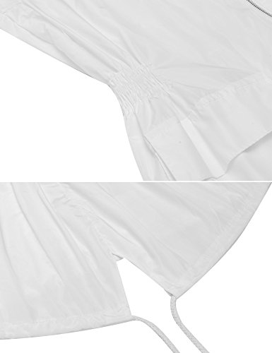 Zeagoo Women Waterproof Hooded Raincoat Zip-Up Long Rain Jacket White L