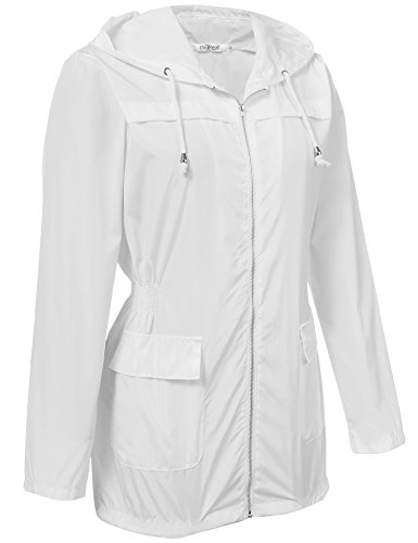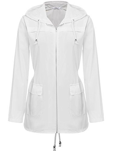 Zeagoo Women Lightweight Hooded Raincoat Active Outdoor Waterproof Jacket White XL