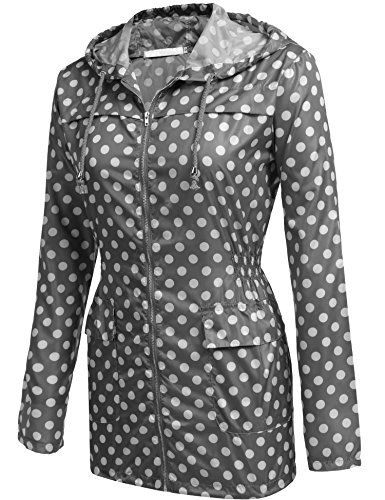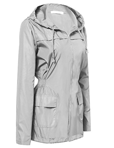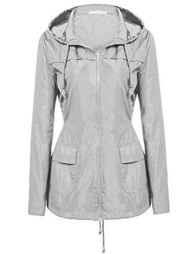 Zeagoo Women Lightweight Hooded Jacket Waterproof Windbreaker Rain Coat Gray XL