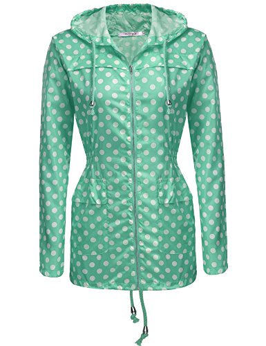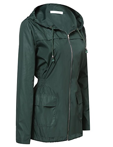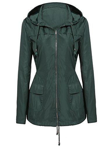 Zeagoo Women Lightweight Casual Waterproof Coat Hooded Outdoor Sport Rain Jacket Green L