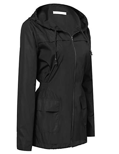Zeagoo Women Waterproof Hooded Raincoat Zip-Up Long Rain Jacket Black White L
