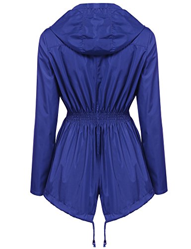 Zeagoo Women Active Ourdoor Durable Waterproof Windbreak Hooded Rain Jacket Blue White XXL