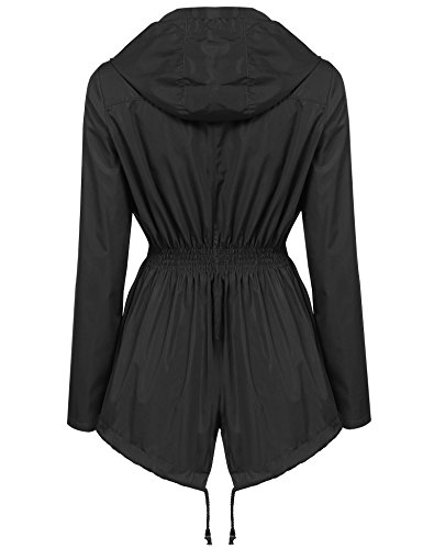 Zeagoo Women Loose Fited Waterproof Raincoat Outdoor Hooded Rain Jacket Black White M
