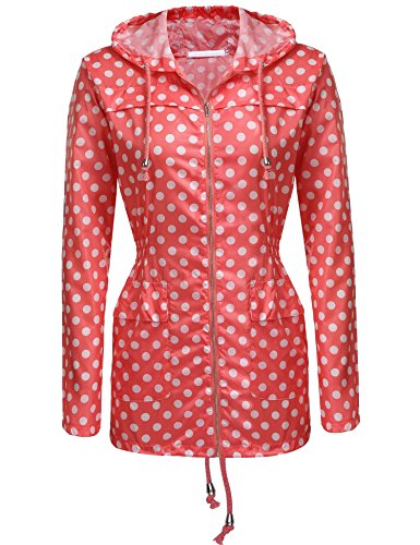 Zeagoo Women Waterproof Raincoat Hooded Waterproof Jacket Raincoat Casual Red S