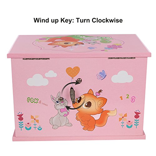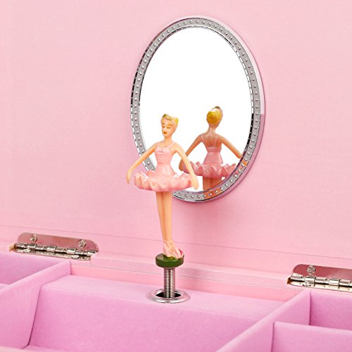 SONGMICS jewelry music box features selected materials and exquisite craftsmanship, aiming to provide you with elegant and practical musical jewelry storage case. Decorated with adorable Fox & Rabbit cartoon pattern, this beautiful pink musical jewelry box perfectly matches kids' interests.Simply open the lid of the ballerina music box, and wind up the clockwork mechanism at the back of the box to reveal a delicate ballerina figurine twirling to the enchanted tune of "Waltz of the Flowers". And it is lined with flocked fabric to protect your precious treasures. The jewelry storage box includes 7 compartments and 3 drawers, large enough to store girl's jewelry like earrings, bracelets, necklaces, cufflinks, hairpins etc. And music will stop automatically when you shut the lid. With these classic designs: delicate ballerina, enchanted music, roomy compartments, hinged top, elegant oval mirror, the jewelry box is not only lovely but also functional, and will be a wonderful gift for daughter, sister or friends.