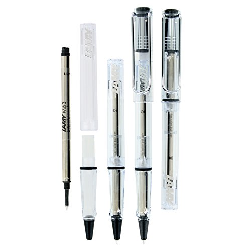 Lamy rollerballs are a good alternative to fountain pens or ballpoint pens. Combine the best of the two classic categories: Our rollerball pens are as easy to operate as ballpoint pens. And they have a similarly beautiful type face to the fountain pen. LAMY vista is designed especially for those who value transparency. One of Lamy's most successful models has been given a transparent body that enables users to see the "innards" at work. Made of clear non-fade plastic it has a chromium plated clip and bears the name Lamy in silver lettering.