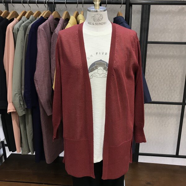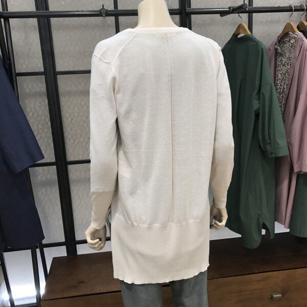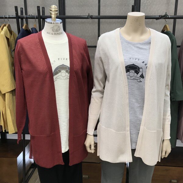 간편하게 걸치기 좋은 롱기장의 린넨가디건입니다. 밑단이 앞뒤 언발형식이라 체형커버에도 좋으며, 등 가운데로 절개선 디테일이 들어가 좀 더 슬림해보이는 효과를 준답니다. 실내 에어컨 아래서 또는 실외 뜨거운 자외선 차단을 위해서 여름철에는 꼭 필요한 머스트해브 아이템이에요^^ 총장길이는 55사이즈 기준으로 앞 75cm, 뒤 78.5cm입니다~~