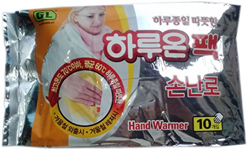 -. Feature : 20 Pack of air-activated hand warmers. / Provides hours and hours of safe, natural heat / Quick, long-lasting heat / Comfort with soft fabric and rounded edges. / Made in Korea.