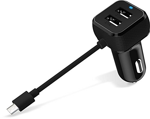 -. Title : Tmvel High Output Car Charger with USB Port and Built-In Micro USB Cable for Android Phones, iPhones and iPads - Retail Packaging - black