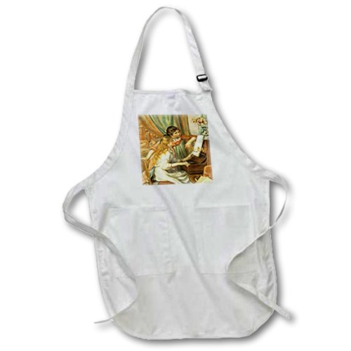 3dRose apr_49363_4 Renoirs Girls at Piano Full Length Apron with Pockets, 22 by 30-Inch, Black