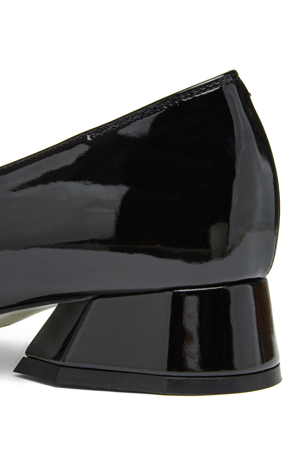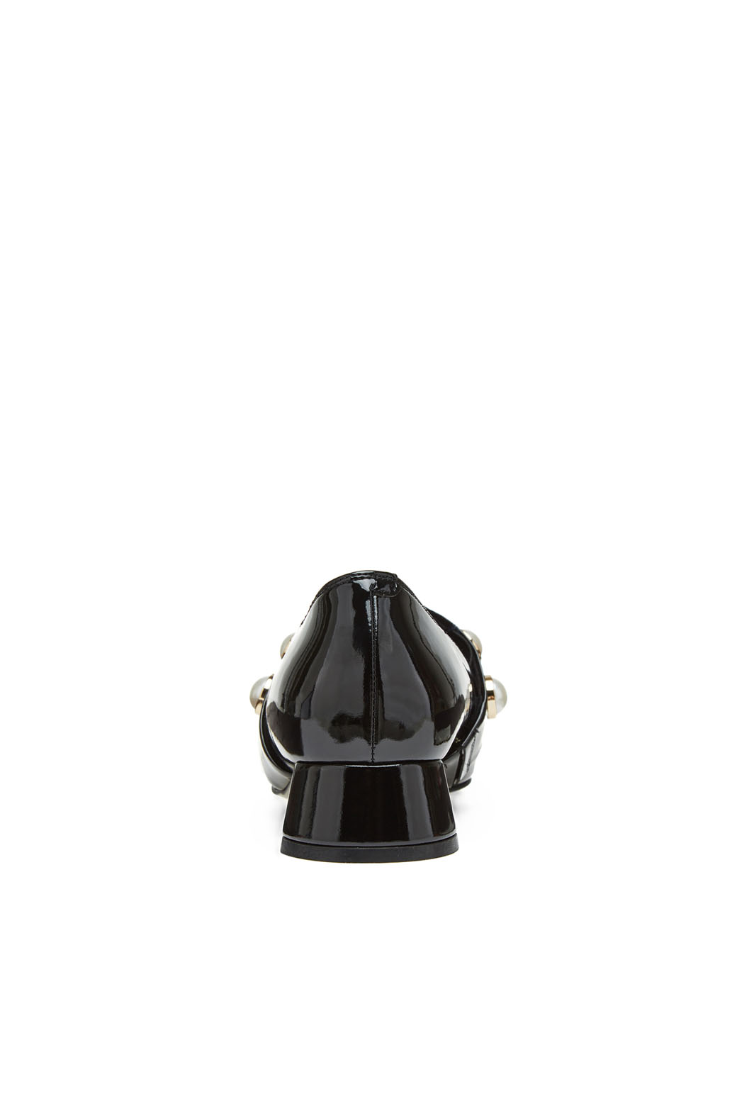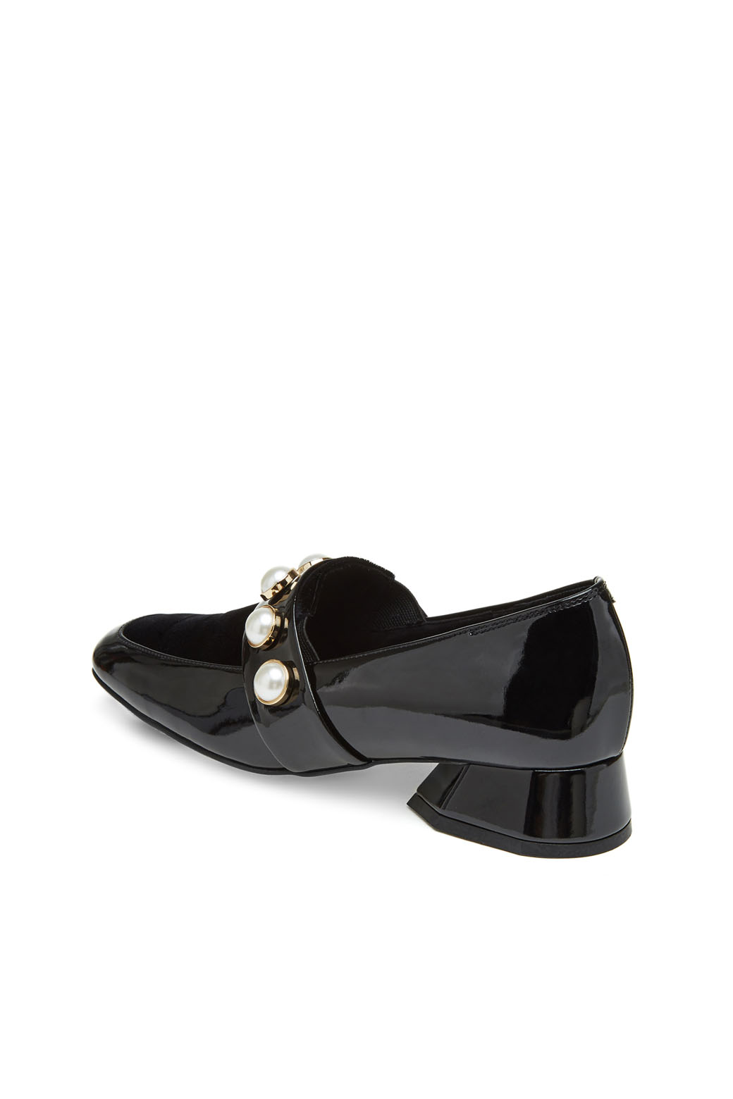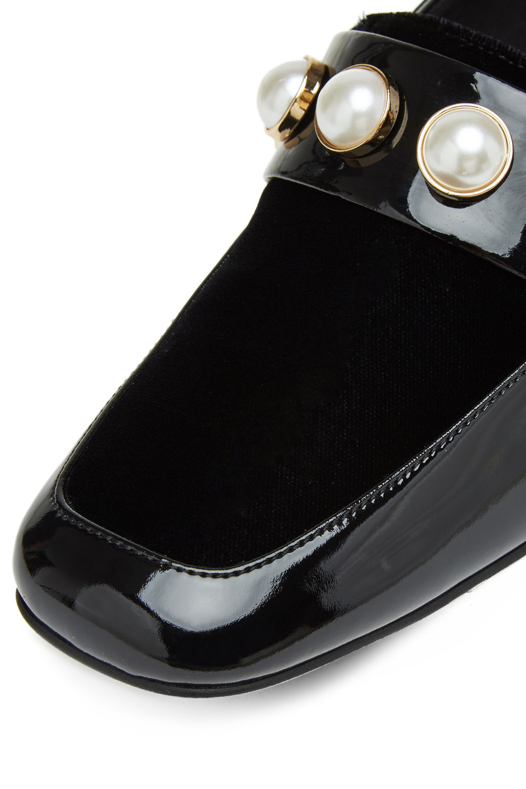 - 발등의 시그니처 진주 장식과 벨벳을 적용한 로퍼.- 스퀘어토 디자인으로 중성적인 느낌을 전해줌.- 적당한 굽높이와 쿠션감으로 우수한 착화감.- 유광택감의 페이던트 소재로 고급스러움.- 다양한 착장에 웨어러블한 연출이 가능.