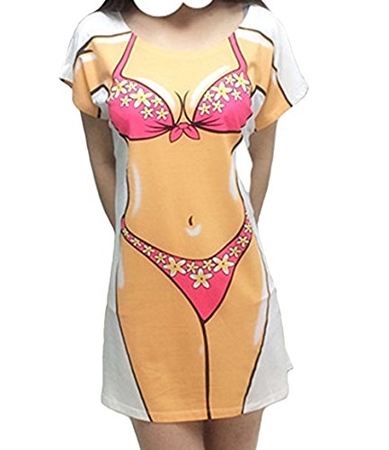 -. Title : Jubileens Women's Short Sleeve Cute Bikini P.R.Int Baggy T Shirt Dress Fun Wear