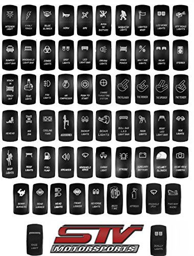 DURABLE: Waterproof black hard surface rocker switch. SPST switch with 5 Pins. The graphic has a very durable coating that is almost impossible to wear off.
