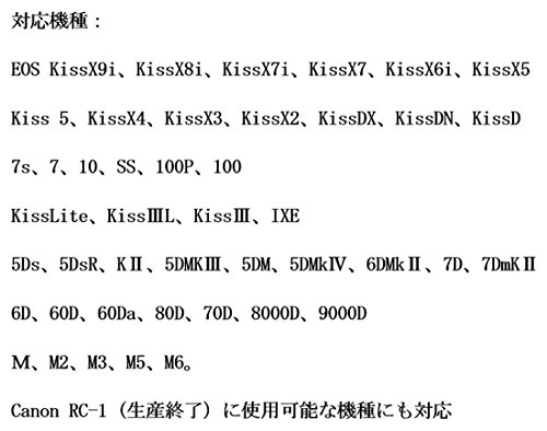 -. Title : 【1年保証】 Canon(キャノン) リモコン RC-6 互換品 (iSmile) EOS Kiss X9i X8i X7 X7i X6i X5 X4 EOS 80D 70D 60D 60Da 5Ds 6D 7D 9000D 8000D EOS M M2 M3 M5 M6 対応 即レリーズ 2秒後レリーズ 機能付き