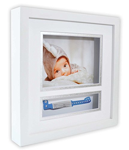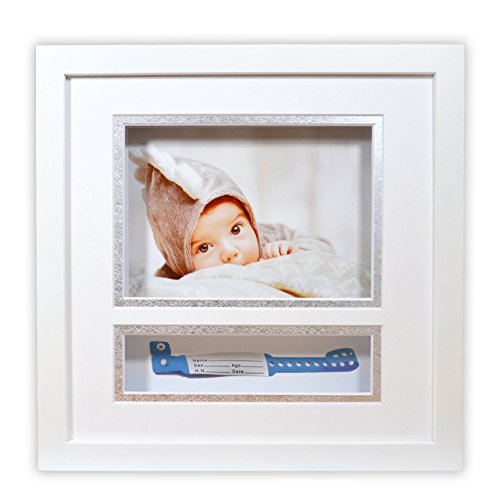 Golden State Art, Baby Frames Collection, 10x10-inch Baby Shadow Box Frame with White/Silver Double Mat and with ID Band Insert, White