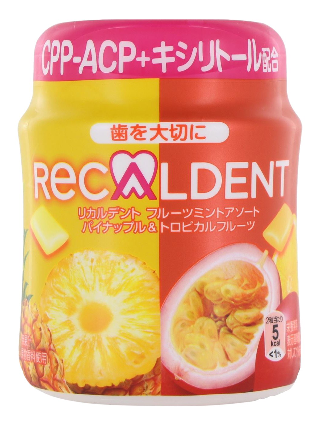 - 原材料:マルチトール、還元水飴、CPP-ACP(カゼインホスホペプチド非結晶リン酸カルシウム)、加工油脂、甘味料(ソルビトール、キシリトール、アスパルテーム・L-フェニルアラニン化合物、アセスルファムK、スクラロース)、ガムベース、香料、アラビアガム、マンニトール、酸味料、レシチン、植物ワックス、着色料(クチナシ、パプリカ色素)、(原材料の一部に乳成分・大豆を含む)