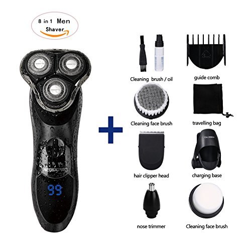 3D IPX7 8In1 Washable Floating Head Rotary Shaver Washable Rechargeable Wet & Dry Men's Electric Shaver & Trimmer Grooming Kit, Men's Electric Razor, Facial Cleaning Brush, Beard Trimmer,Nose trimmer.