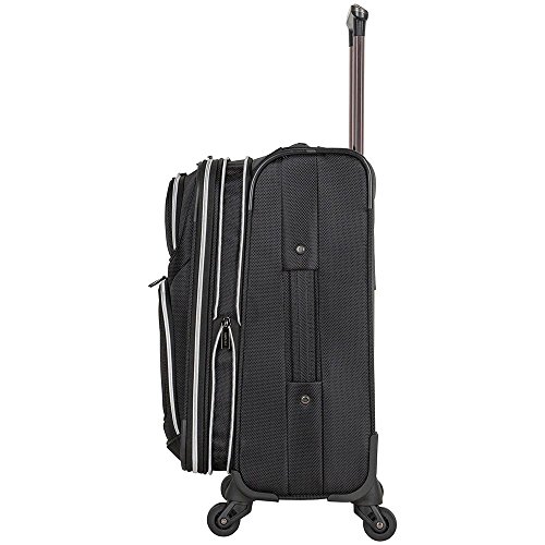 Product Description Expands An Additional 2.0" Inches For Greater Carrying Capacity When NeededMulti-Directional 4-Wheel Spinners Allow Smooth, 360° Degree Movement Over Any Rough Surface For Complete Mobility Free-Weight Rolling, Relieving Any Pressure From Your Arms While On The MoveLightweight ConstructionDurable, 1680D Polyester Exterior Body Material With Fully Lined Tear-Resistant Polyester InteriorSelf-Repairing Coil Zippers For Long-Lasting UseFront Exterior Includes Two Gusseted Easy Access Zipper Pockets For Frequently Needed ItemsLid Section Includes A Mesh Zipper Pocket And Two Elastic Top Shoe / Accessory PocketsRoomy Main Compartment Features Garment Restraints And Removeable 3-1-1 One-Quart Size “Flight Friendly" Toiletry Top Zip Bag For Carry-On LiquidPadded Top Handle, Retractable Flat Side Handle And Padded Foot Grab Handle Allows For Easier LiftingSturdy Locking Retractable Push-Button Telescopic Trolley Handle Conductive For Simple, One-Handed UseRear Exterior Includes A Business Card Size I.D. PocketMeets Most U.S. Based Airline Carry-On Size Requirements And Fits Into Most Airline Overhead Bin Compartments_x000D_ Overall Size: 22.0" H x 14.0" W x 10.0-12.0" D_x000D_ Packing Dimension's: 20.0" H x 14.0" W x 9.25" D_x000D_ Weight: 8.3 lbs 0