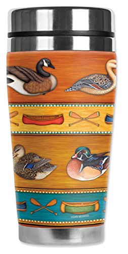 Mugzie 1209-MAX "Ducks & Canoe's" Stainless Steel Travel Mug with Insulated Wetsuit Cover, 20 oz, Black