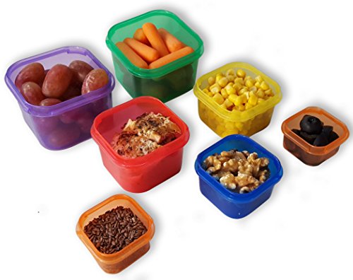 ★ NO MORE MEASURING FOR EASY MEAL PREP! - Easy, fun, and color coded sturdy containers allow you to prepare meals without measuring. Includes: (1) Green (veggies - 1 c.), (1) Purple (fruits - 1 c.),(1) Red (proteins - 3/4 c.), (1) Blue (healthy fats - 1/3 c.), (1) Yellow (carbs - 1/2 c.), (2) Orange (seeds & dressings - 1 oz.)