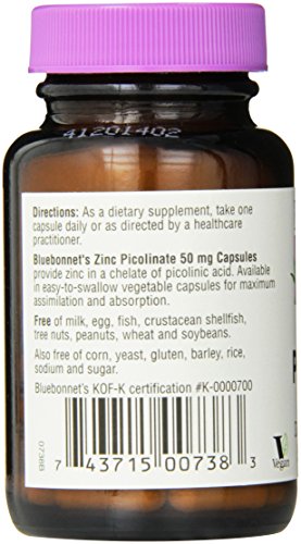 ReleaseDate : 2015-05-28 Studio : Blue Bonnet Publisher : Blue Bonnet Binding : Health and Beauty Product Description Bluebonnet's Zinc Picolinate provides zinc in a chelate of picolinic acid. Zinc is essential to the normal function of many organs and systems within the body including the skeletal, immune, neurological, and endocrine systems. It is also known to play a critical role in the body's defense against oxidative processes and is especially helpful for maintenance of healthy aging. 0