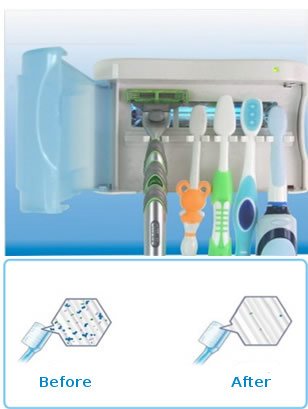 How does the UV Toothbrush Sanitizer work? Toothbrush sanitizers work by exposing the toothbrush to UV light, which kills most germs. The photons from the UV light have the most effective wavelength to kill all the bacteria, viruses and mold that may be hiding on your toothbrush.
