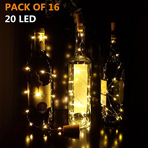 Wine Bottle Lights With Cork,DIGSELL 20 LED Cork Lights For Bottle 16 Pack Copper Wire Bottle Lights For DIY Party Decor Christmas Halloween Wedding(Warm White)