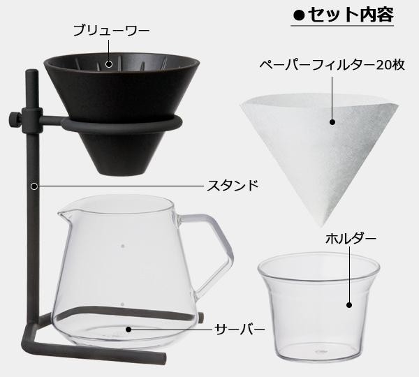 | 仕様 | ●スタンド:食洗機使用不可 ●サーバー、ホルダー、ブリューワー:電子レンジ・食洗機使用可 ●耐熱温度差:120度(サーバー、ホルダー) ●サーバー満水容量:700ml |