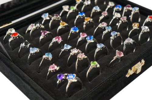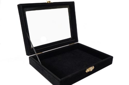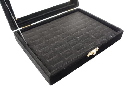 Color Velvet Jewerly Glass Top Lid Box, 48 Black Velvet Slots, for Rings Cuffs (Black)