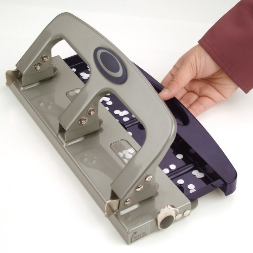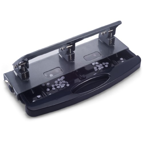 Officemate Deluxe Medium Duty 3-Hole Punch with Chip Drawer, Silver and Navy, 20-Sheet Capacity (90102)