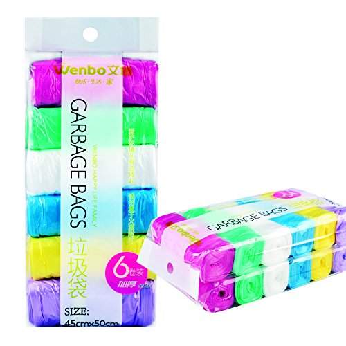 Wenbo Car Colored Trash Garbage Wastebasket Bags Packs Of 100 Counts,Thin Material Small Size 20-Liters/5-Gallon (1 Pack/6Rollls)