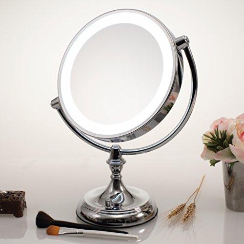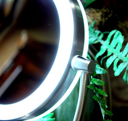 - COMPREHENSIVE – This dual-sided 360° swivel design luxury mirror features 1x10x magnification. 1x for a great view of your entire face all at once, and 10x for precision, because every detail counts (7.5” diameter)