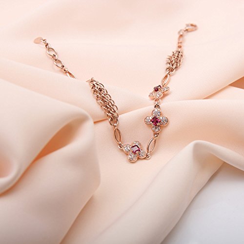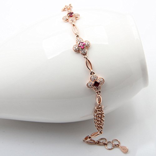 ♥HIGH-QUALITY♥ - The bracelet metal: 925 Sterling Silver(18K rose gold plating surface). This bracelet is adorned with three garnet and some small synthetic cubic zirconia which makes it look more attractive and brilliant. Bracelet is affixed with the highest quality sterling sliver "S925". Gem stone level: high quality, high level, brightness range: bright, highly reflective luster.