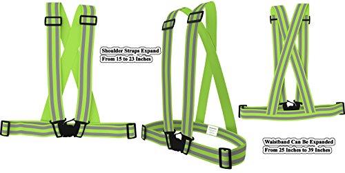 The Waistband can be expanded from 25 inches to 39 inches and the shoulder straps expand from 15 to 23 inches, allowing men and women of any size and shape to comfortably enjoy the reflective safety vest